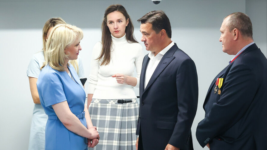 Губернатор Московской области пообщался с сотрудниками отделения, участниками СВО и родными бойцов, которые обратились в Фонд за помощью, а также осмотрел службу социальных координаторов и медико-социальной экспертизы, социальный МФЦ, пункт проката технических средств реабилитации, симуляционную квартиру и кабинет психолога, сообщает пресс-служба губернатора и правительства Подмосковья.