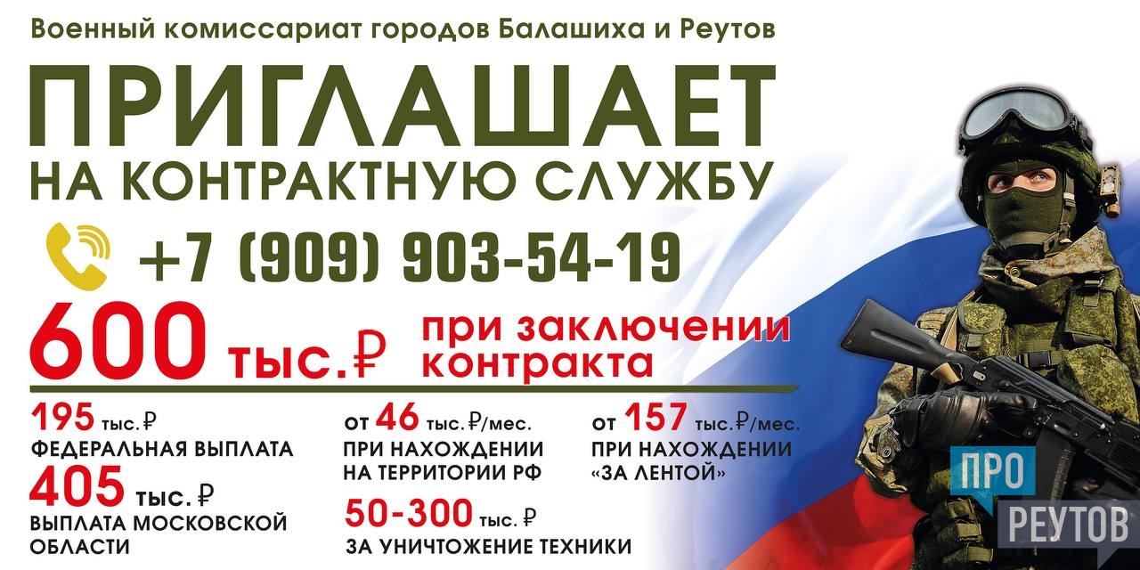 ✔️Жителей Реутова от 18 лет призывают служить по контракту.