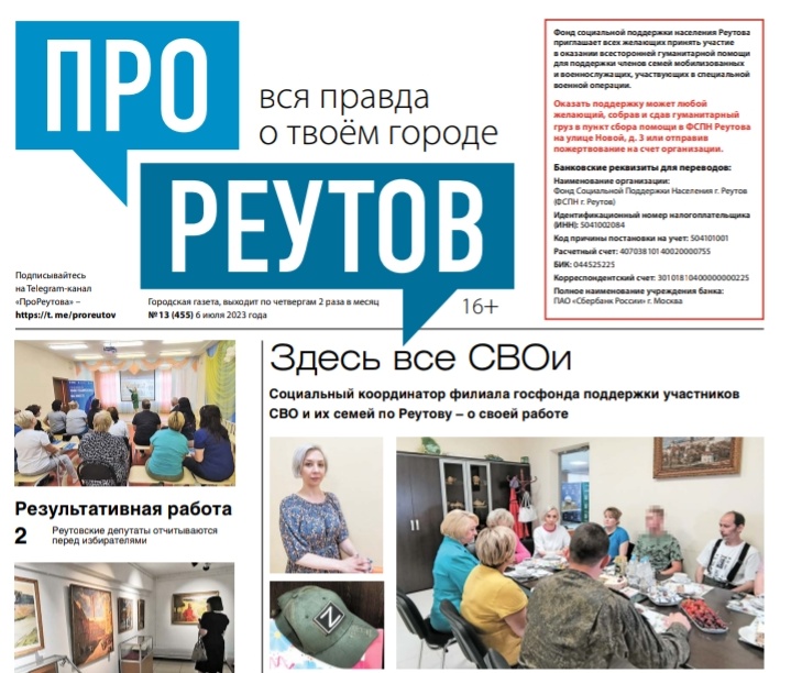 В четверг, 6 июля, вышел 13-й (455) выпуск бесплатной газеты «ПроРеутов».