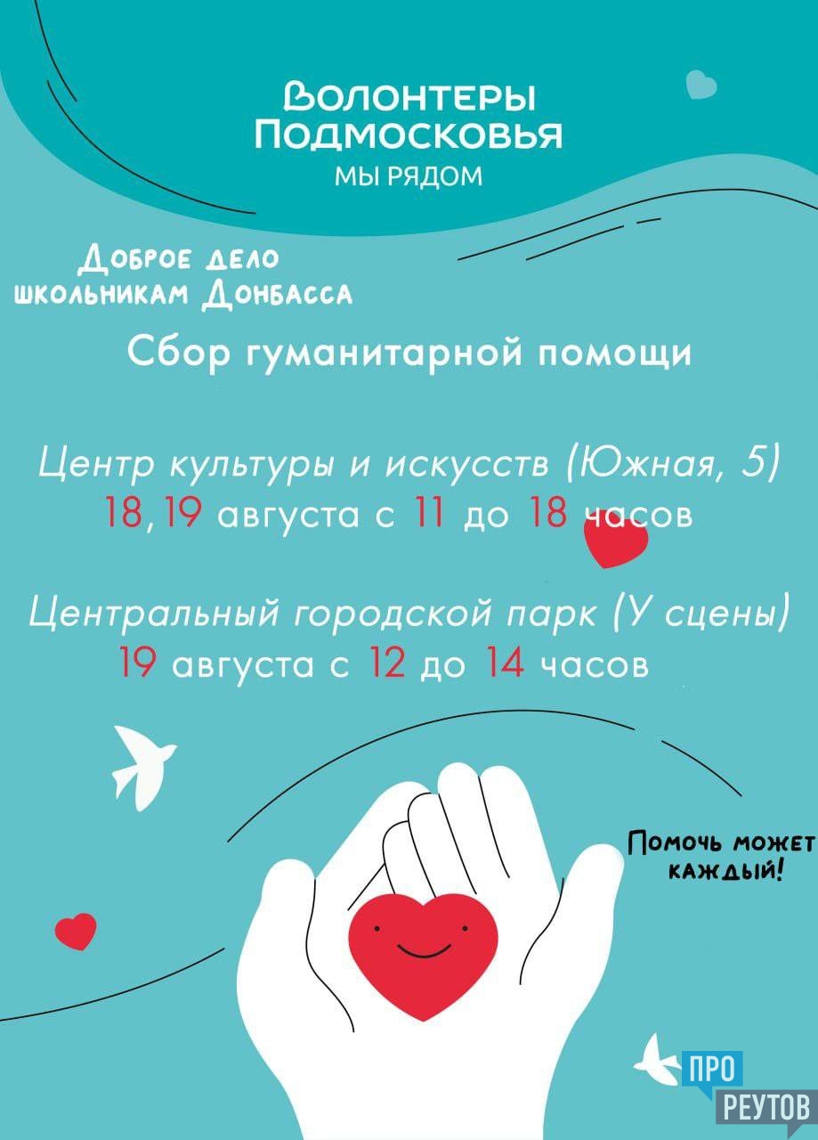 «Передать помощь и оказать поддержку школьникам вновь присоединённых территорий жители Реутова смогут приняв участие в благотворительной акции. Она пройдет в Центре культуры искусств на улице Южной. 18 августа сбор будет проходить с 11:00 до 18:00, а 19-го – с 12:00 до 14:00», - рассказал Станислав Каторов.
