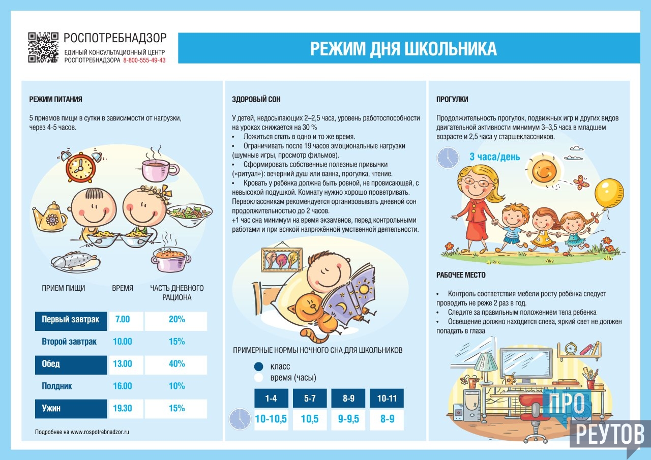 Hогинский территориальный отдел Управления Роспотребнадзора по Московской области перед началом нового учебного года напоминает, что в повседневной жизни школьника очень важно соблюдать режим дня. Чёткий порядок помогает правильно сбалансировать рабочую деятельность и отдых, что очень важно для растущего ребёнка и его здоровья.
