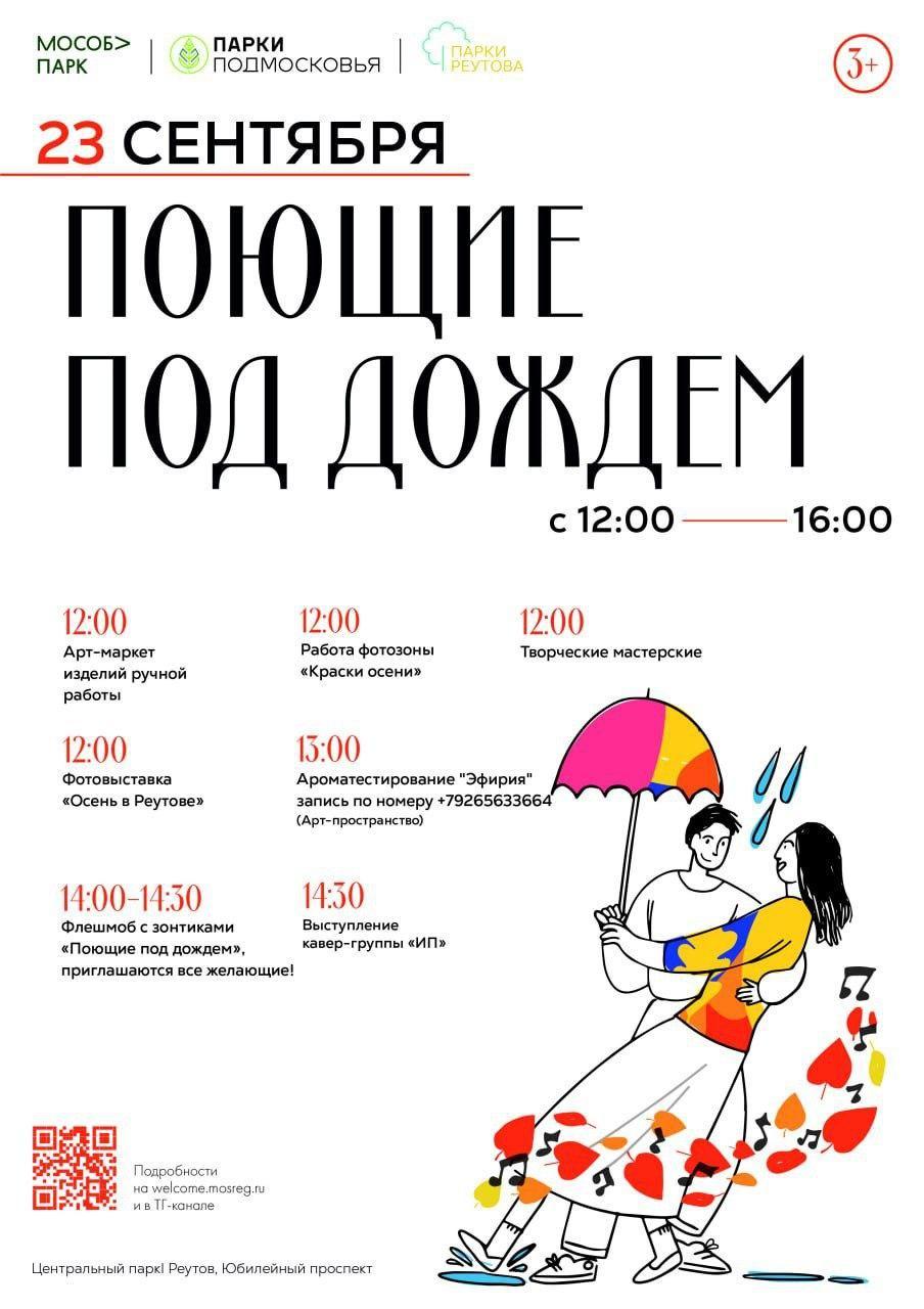 Для участия в мероприятии не забудьте захватить зонтик , в нашем парке пройдут флешмобы, где зонтики очень пригодятся. Также пройдут мастер-классы, музыкальные выступления, будут работать фотозоны и выставки ваших фотографий осеннего Реутова