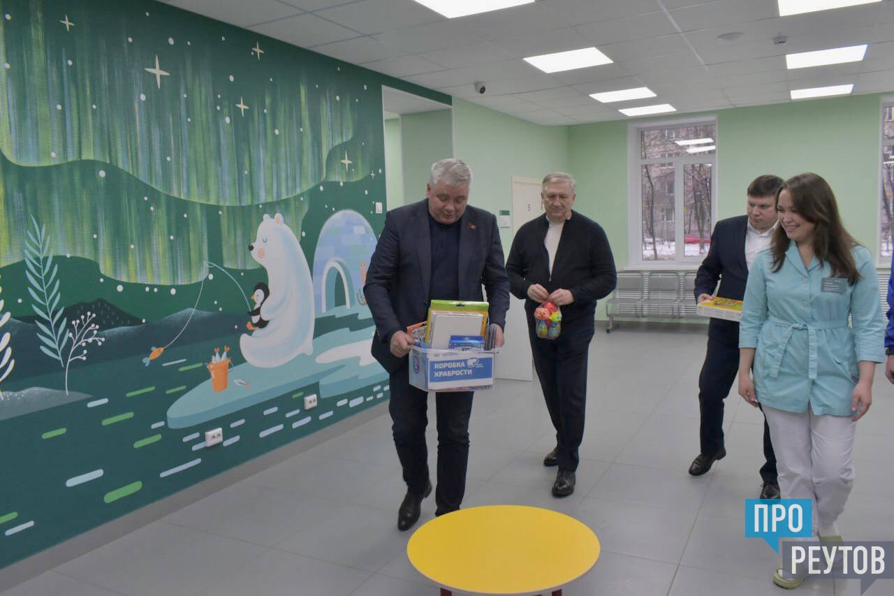 Депутат Московской областной Думы Тарас Ефимов вместе с руководителем исполкома реутовского отделения партии «Единая Россия» Дамиром Делевировым и активистами «Молодой Гвардии» передали наборы для творчества, фломастеры, магнитные конструкторы, пластилин, книги с зимними сказками, игрушки для самых маленьких в «Добрую комнату» детского отделения поликлиники №2 Центрального городской клинической больницы Реутова на улице Юбилейный проспект.