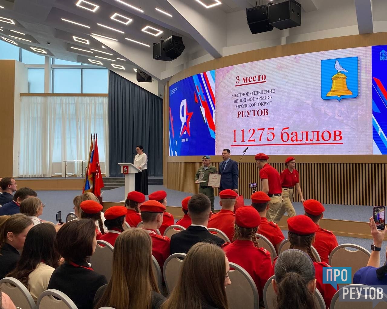 Делагация юнармейцев из разных школ Реутова во главе с начальником штаба Юнармии городского округа Дмитрием Чесноковым на этом мероприятии получила награды за третье место в областном смотре-конкурсе среди всех подмосковных местных отделений юнармейского движения.