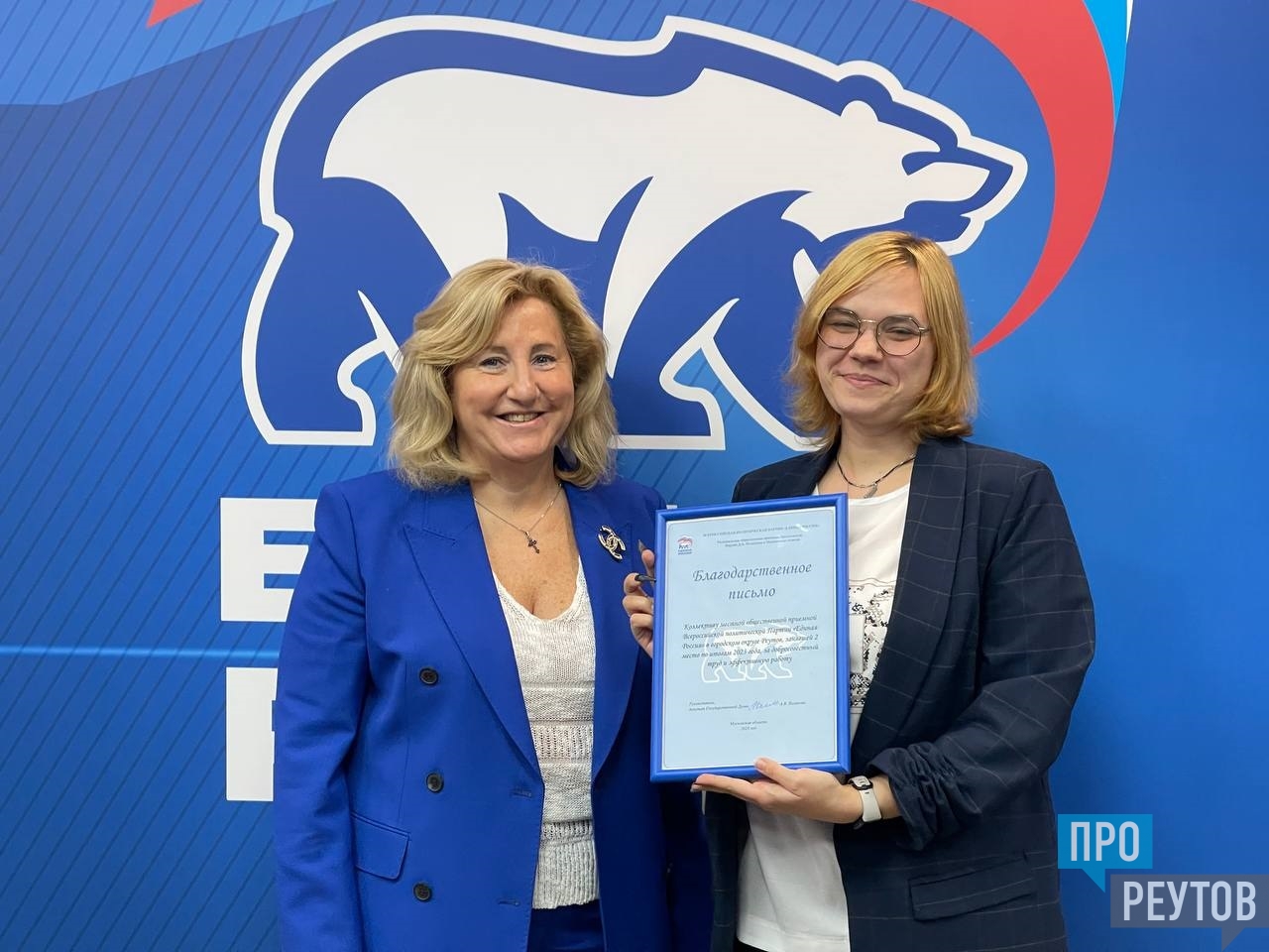 Депутат Государственной Думы Алла Полякова наградила коллектив местной общественной приемной партии «Единая Россия» в городе Реутов, занявшей 2 место по итогам 2023 года, за добросовестный труд и коллективную работу.