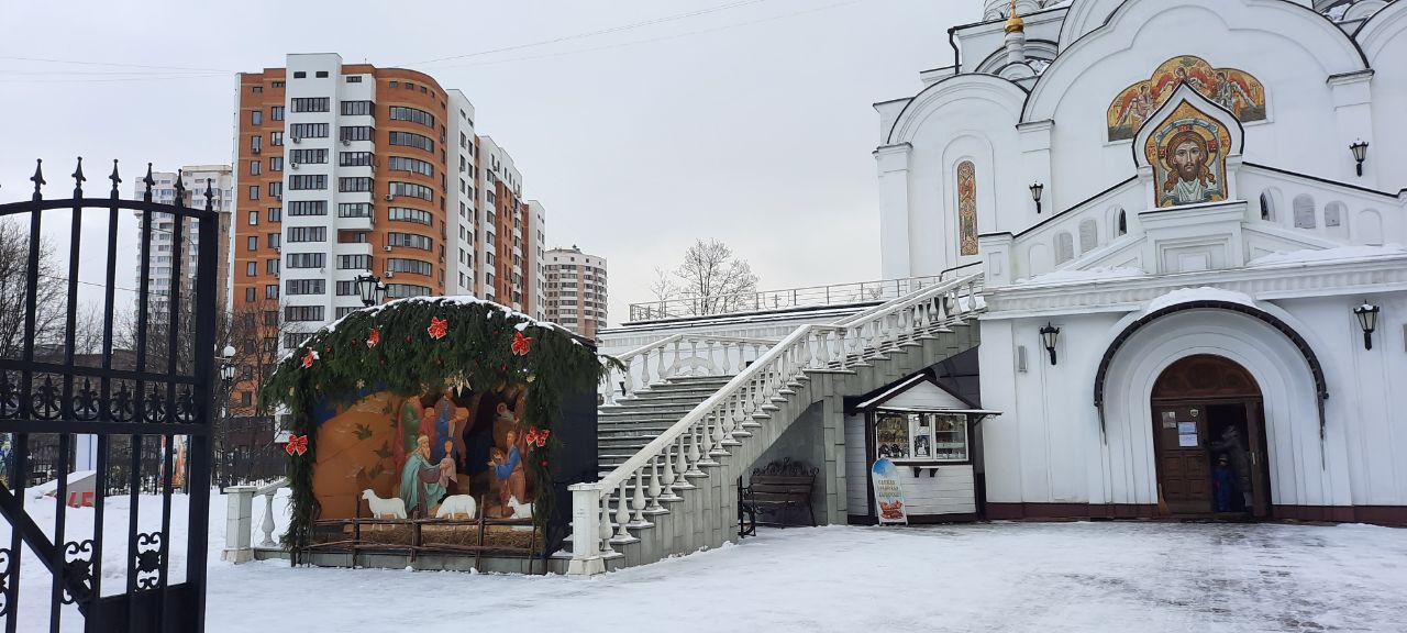Рождественский вертеп привлекает внимание проходящих мимо Троицкого храма на улице Победы. Это традиционная инсталляция с воссозданием пещеры, где родился Христос, которую устанавливают в храмах, на площадях города и в домах верующих. Главные элементы вертепа — фигурки младенца Христа в яслях, Девы Марии.