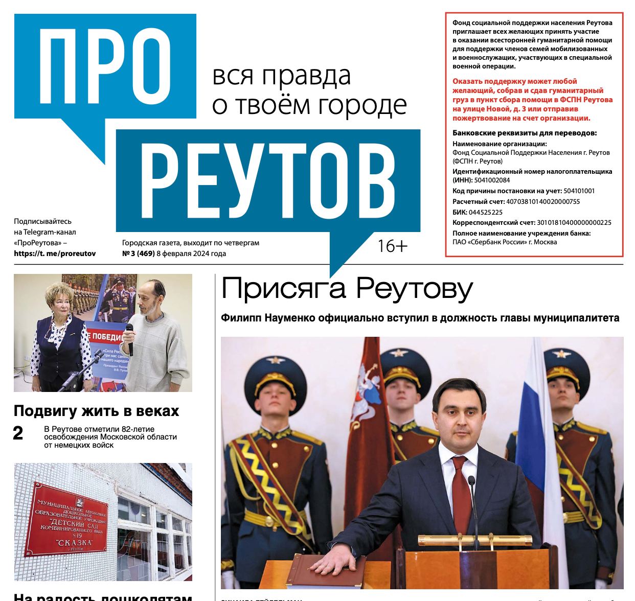 В четверг, 8 февраля, вышел 3-й (469) выпуск бесплатной газеты «ПроРеутов».