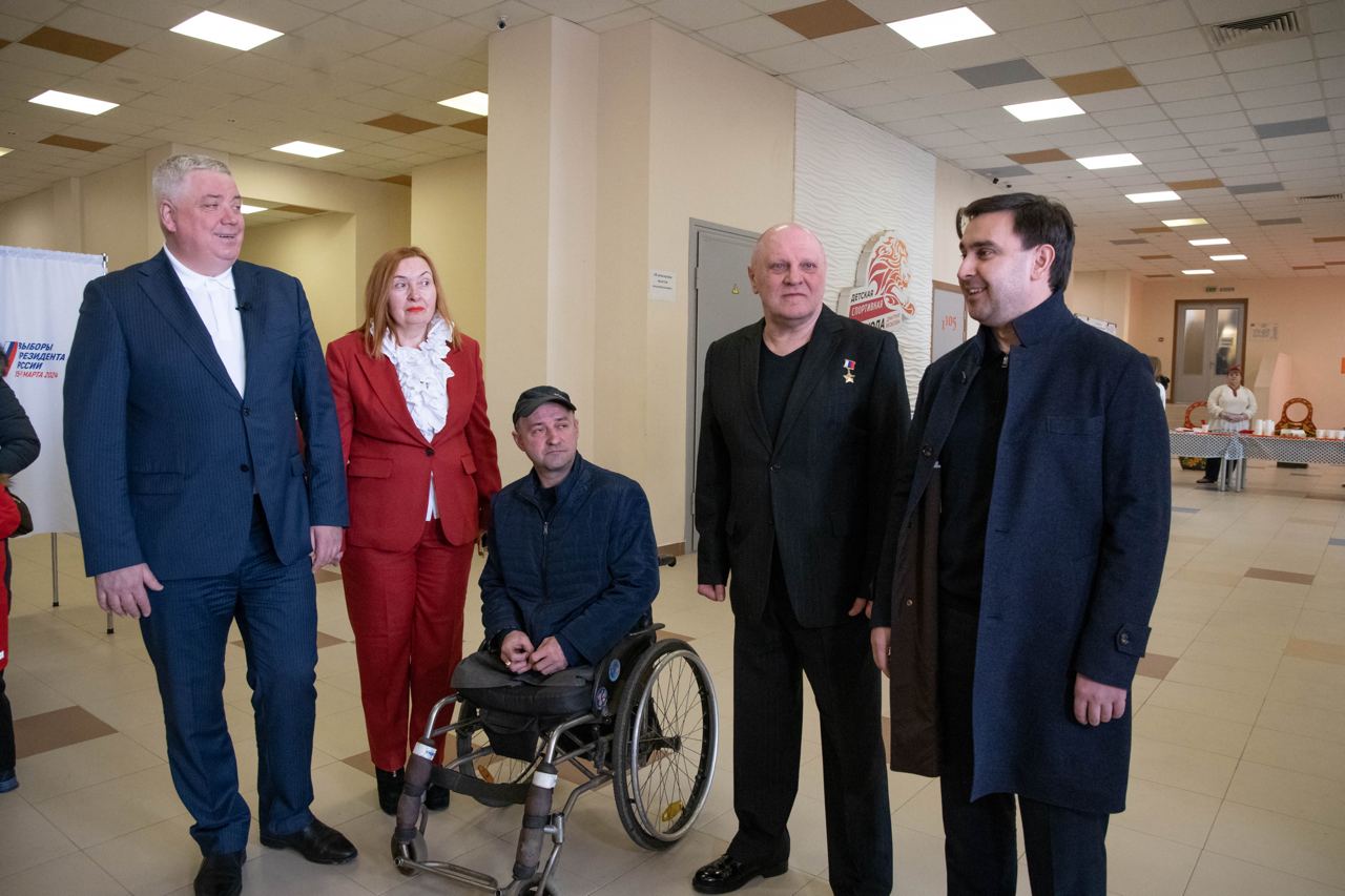 Глава администрации города Филипп Науменко, депутат Московской областной думы, член фракции «Единая Россия» Тарас Ефимов, Герой России Андрей Мерцалов и и член Реутовской городской организации Всероссийского общества инвалидов Денис Пупышев оценили ход голосования на участке № 1740, расположенный в реутовской гимназии № 1740 по адресу ул. Некрасова, 15.