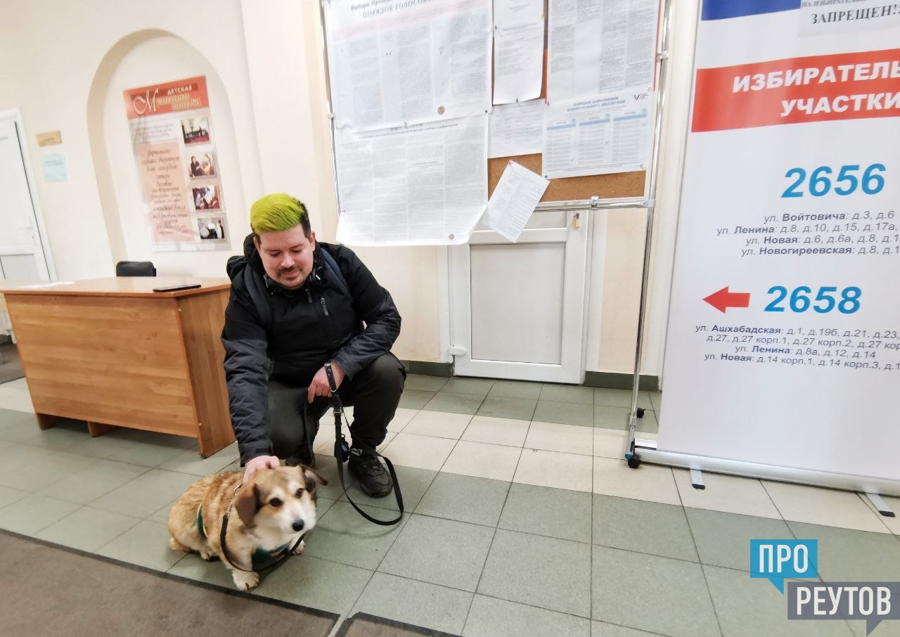 На избирательные участки Реутова некоторые избиратели пришли с домашними питомцами. УИК в музыкальной школе №1 посетили в воскресенье днём собачка породы корги по кличке Молли и ее хозяин Антон Митин.