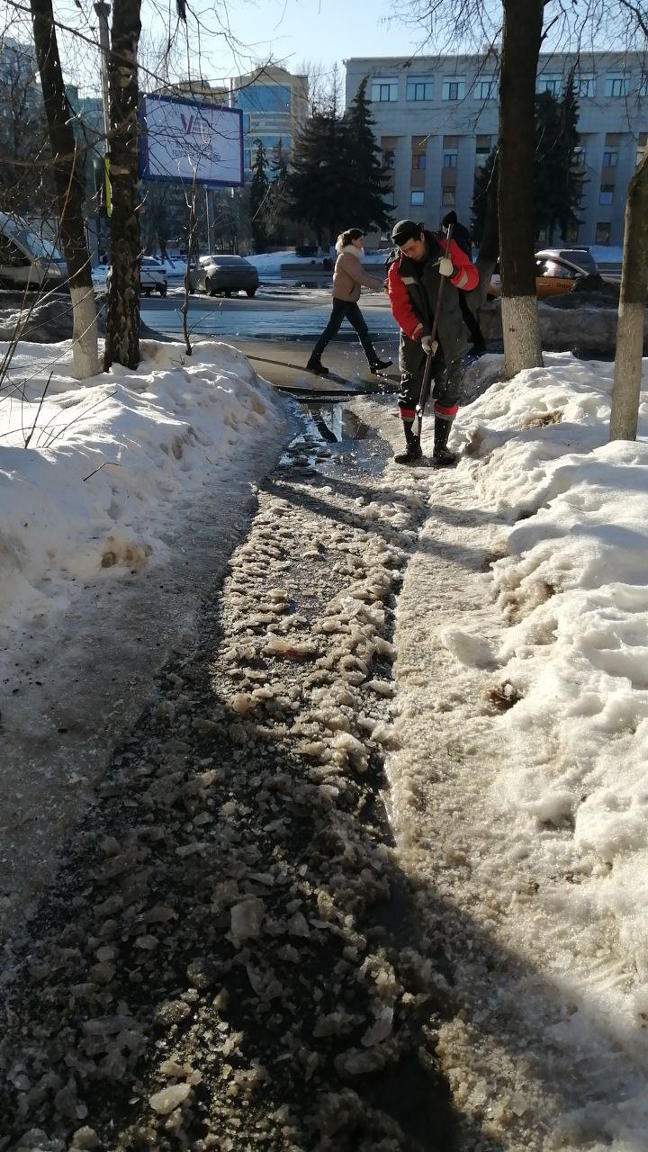 «Сейчас мы активно разбиваем и ворошим сугробы, чтобы снег быстрее растаял. Многие из них превратились в гигантские ледяные глыбы. Поэтому основной инструмент в руках у наших сотрудников — это штыковая лопата. В совсем тяжелых случаях сугробы приходится ворошить тракторами».