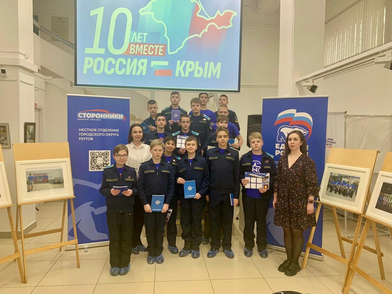 Совместно с местным отделением партии «Единая Россия» г.о. Реутов в Музейно-выставочном центре для кадетов школы №1 прошел урок в музее, приуроченный 10-й годовщине присоединения Крыма к России. Его организовали в соответствии с партийным проектом «Историческая память».
