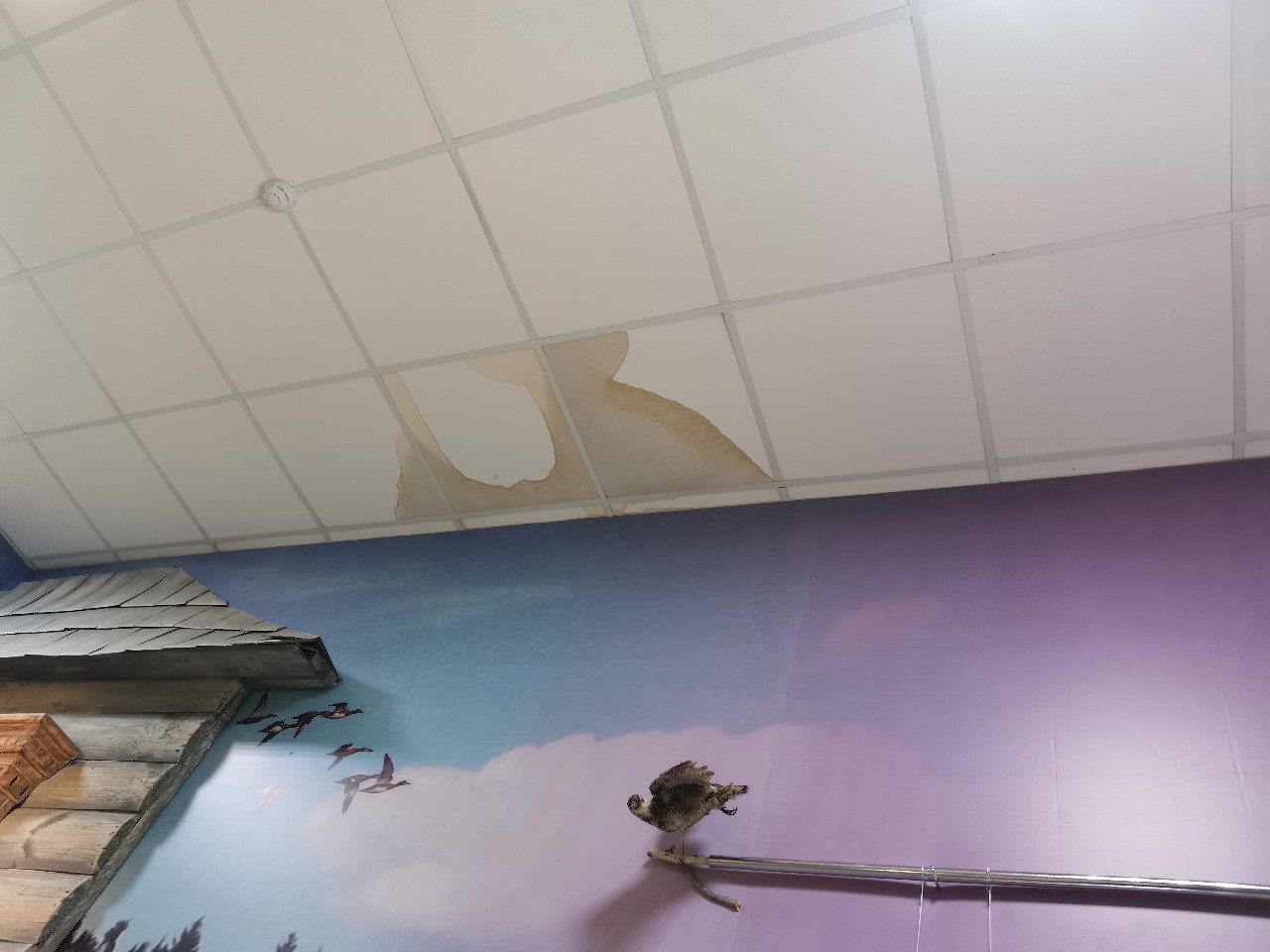 Сейчас о случившемся происшествии напоминают только несколько высохших подтёков в одном из углов на стене и на потолке. В ближайшее время это место, по словам Антонины Кошкиной, будет отремонтировано за счёт средств учреждения.