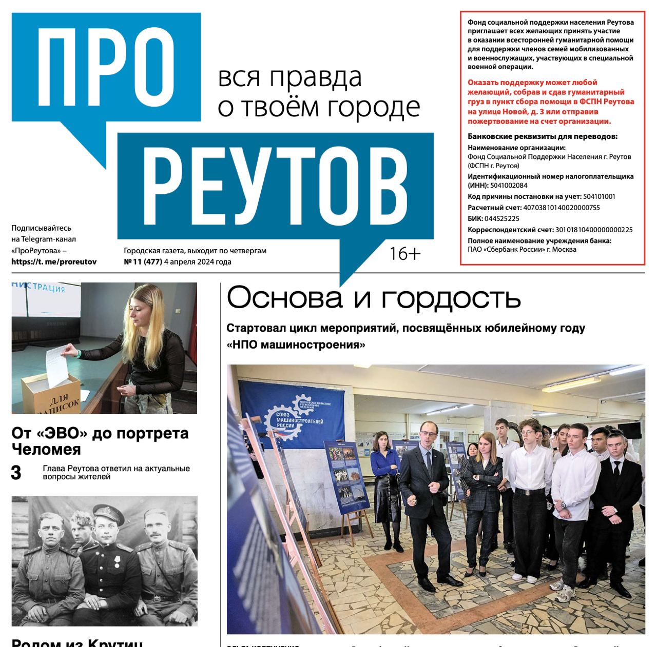 В четверг, 4 апреля, вышел 11-й (477) выпуск бесплатной газеты «ПроРеутов».