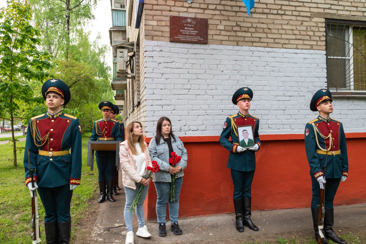 На улице Гагарина, 9, торжественно увековечили память сержанта Константина Вяткина, погибшего в зоне проведения специальной военной операции (СВО) в апреле 2023 года. В церемонии открытия мемориальной доски, установленной на доме, в котором жил герой, приняли участие глава Реутова Филипп Науменко, депутаты Совета городского округа, военком, рота почётного караула и военный оркестр дивизии имени Ф.Э. Дзержинского, ветераны, кадеты-юнармейцы, сёстры погибшего воина — Наталья Джаббар и Татьяна Абдрашикова, а также его друзья и соседи.