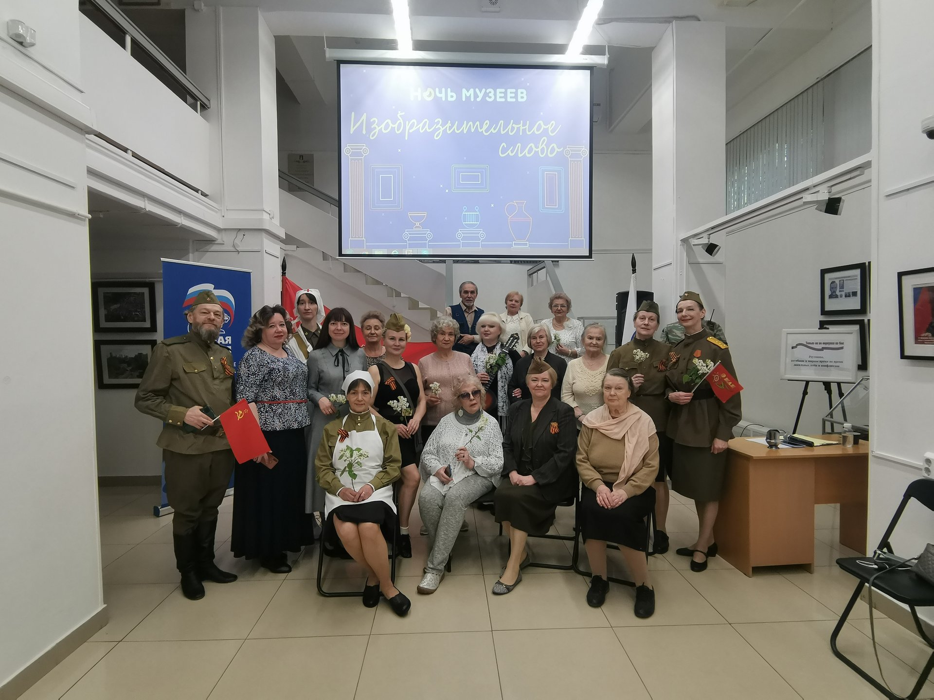 В тему Ночи музеев о музеях, хранящих семейные реликвии, в том числе связанные с Великой Отечественной войной, был рассказ Наталии Олеговны. Гости МВЦ подготовили музыкально-танцевальную сценку, вовлекая в нее зрителей, что отзывалось в их душе, а потом они сами продолжали читать свои стихи не выходя из своего образа: Павел Матюхин, порадовал гостей своими стихами в образе раненого.