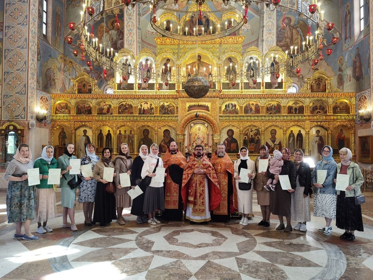 Благочинный церквей Балашихинского округа и настоятель храма священник Михаил Конюхов в сослужении заведующего отделением священника Михаила Бычкова и клириков Троицкого храма совершил благодарственный молебен, после которого обратился к собравшимся с напутственным словом и вручил шестнадцати выпускникам свидетельства об окончании курсов. Источник - https://mosbalepar.ru/news/2024/05/19/179298/