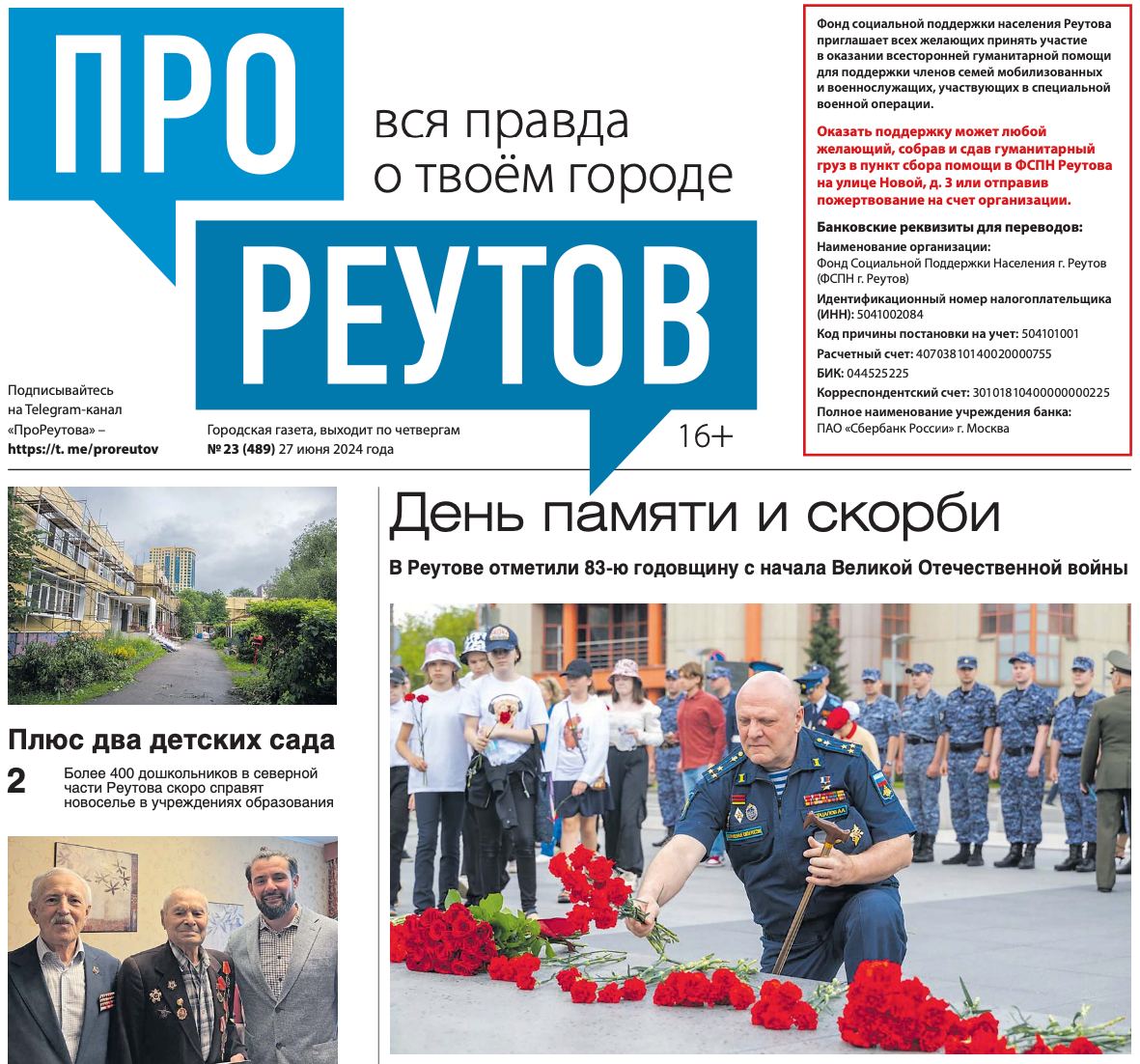 В четверг, 27 июня, вышел 23-й (489) выпуск бесплатной газеты «ПроРеутов».