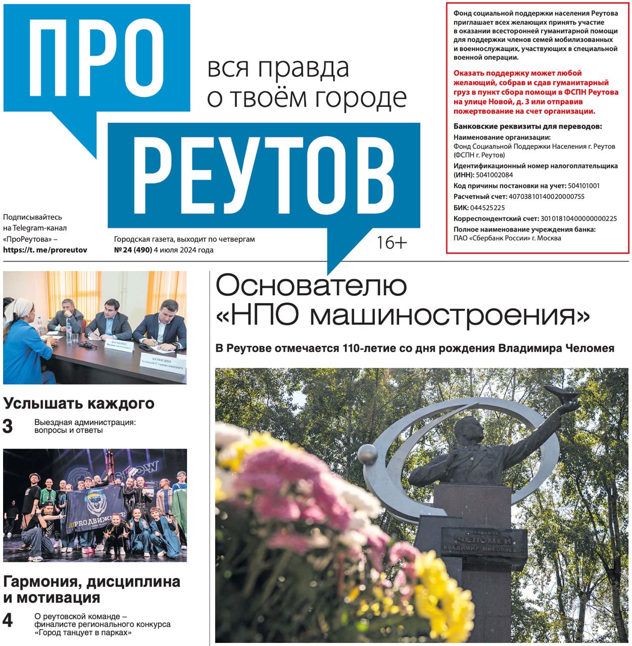 В четверг, 4 июля, вышел 24-й (490) выпуск бесплатной газеты «ПроРеутов».