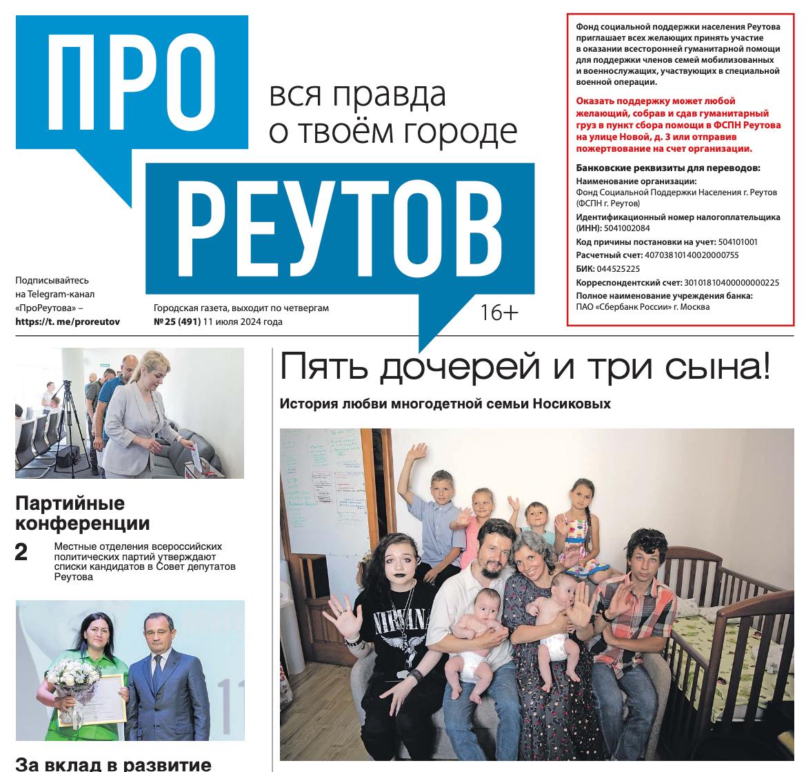В четверг, 11 июля, вышел 25-й (491) выпуск бесплатной газеты «ПроРеутов».
