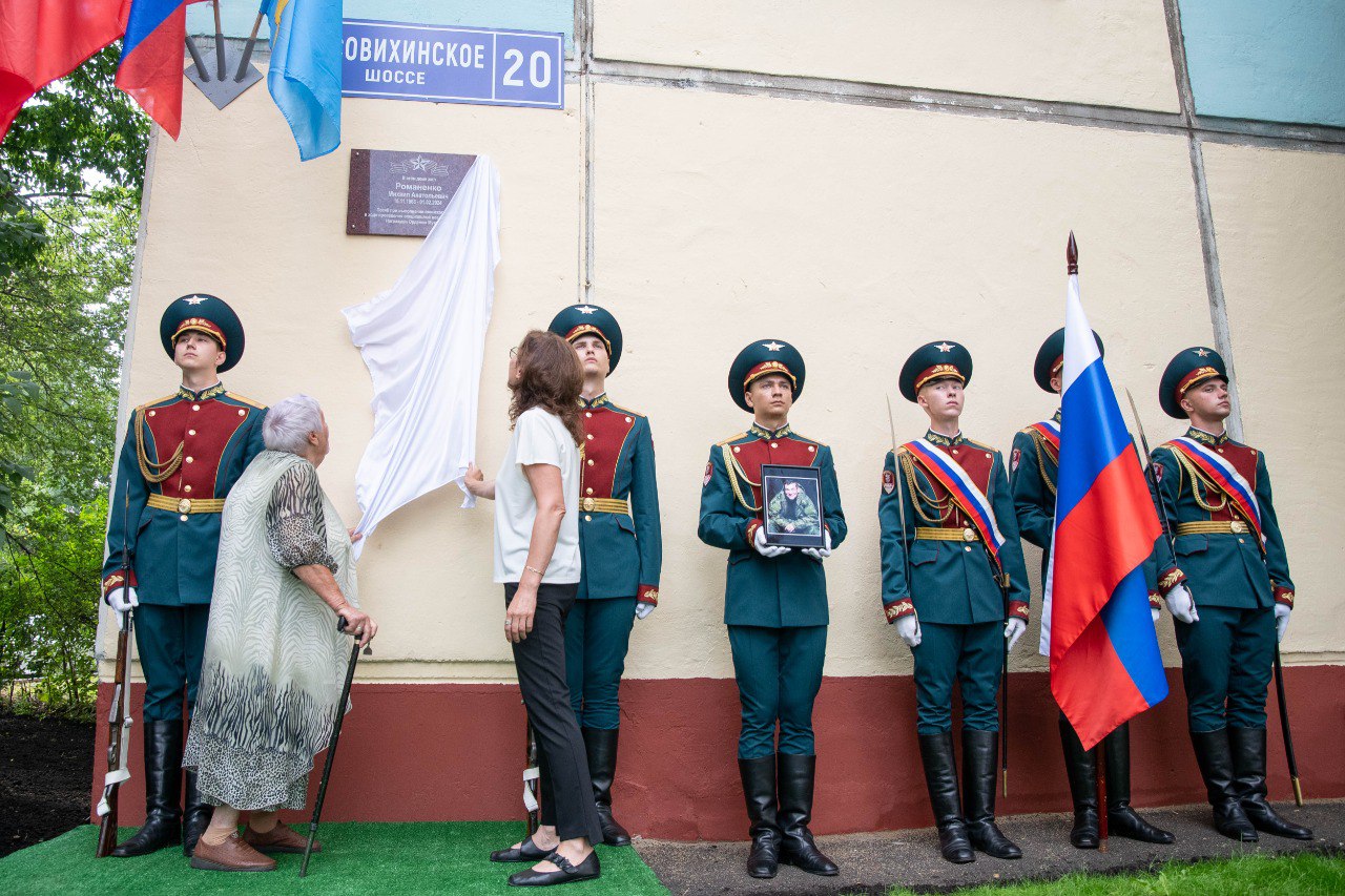 Утром 16 июля у дома на Носовихинском шоссе, 20, где Михаил Романенко провёл свои детство и юность, было многолюдно. В церемонии открытия мемориальной доски в память об этом мужественном человеке приняли участие глава Реутова Филипп Науменко, командир Отдельной дивизии оперативного назначения имени Ф.Э. Дзержинского Дмитрий Кузнецов, Герой России Андрей Мерцалов, депутаты Совета городского округа, лидеры общественного мнения, члены городского Совета ветеранов, родные погибшего воина, а также его друзья и соседи.
