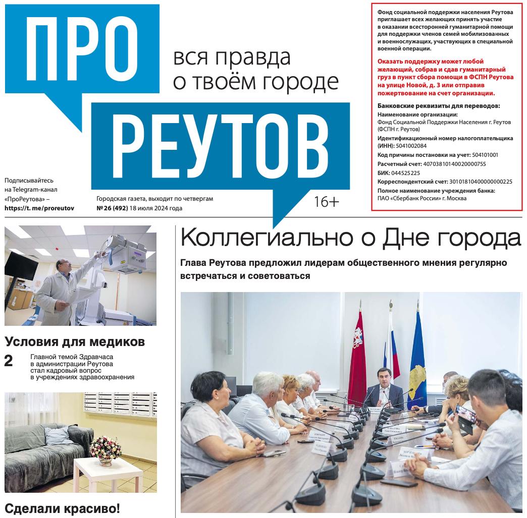 В четверг, 18 июля, вышел 26-й (492) выпуск бесплатной газеты «ПроРеутов».