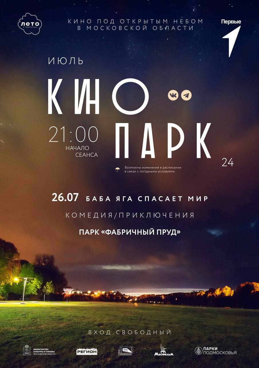 В эту пятницу вечером в парке «Фабричный пруд» в 21:00 пройдет кинопоказ под открытым небом от @mosoblkino. Посетители парка увидят кинокомедию «Баба Яга спасает мир»