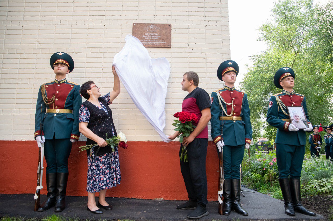 Мемориальную доску в память о кавалере ордена Мужества Игоре Евстратове открыли 6 августа в Садовом проезде на доме № 1, где он провёл своё детство. Игорь Евстратов погиб в конце прошлого года под обстрелом на боевом задании в зоне специальной военной операции. На момент гибели он находился на должности начальника радиостанции командно-штабной машины взвода управления батальона связи, ему было 46 лет.