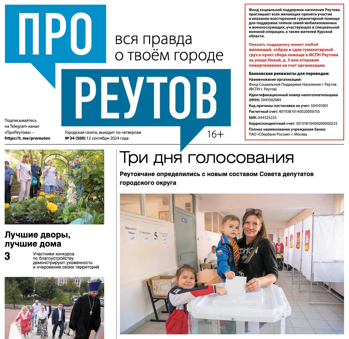 В четверг, 12 сентября, вышел 34-й (500) выпуск бесплатной газеты «ПроРеутов».