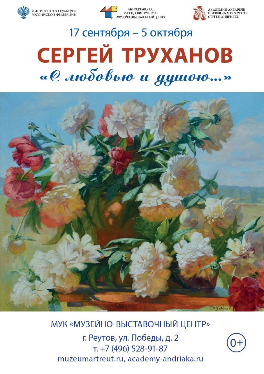 Музейно-выставочный центр (ул. Победы, д. 2) приглашает 19 сентября в 15.00 на торжественное открытие выставки «С любовью и душою...» Сергея Николаевича Труханова, педагога Академии акварели и изящных искусств Сергея Андрияки, и его учеников.
