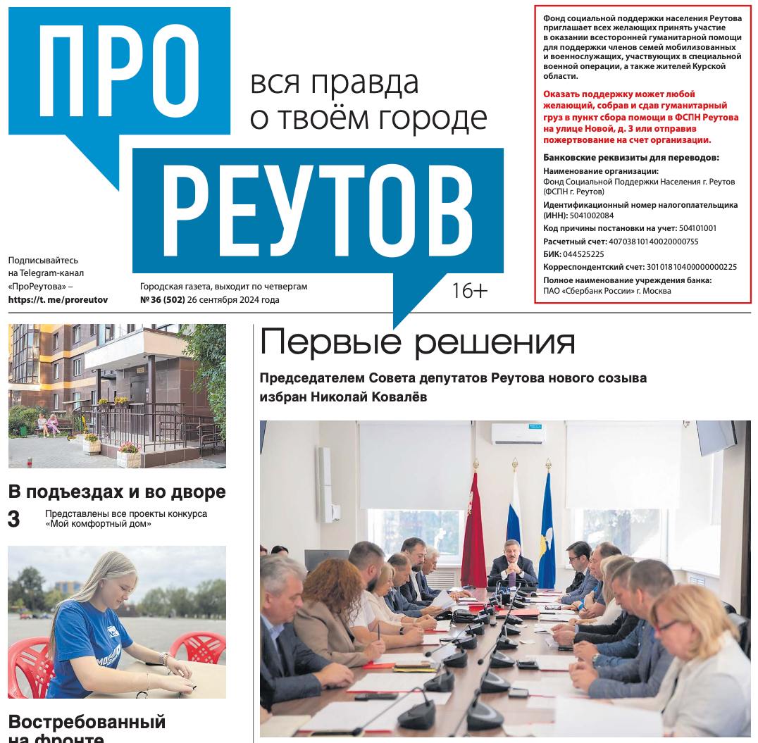 В четверг, 26 сентября, вышел 36-й (502) выпуск бесплатной газеты «ПроРеутов».