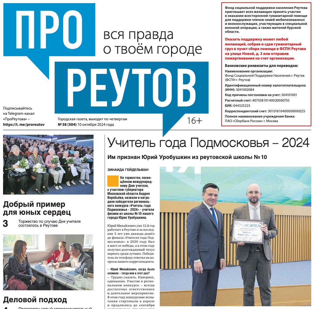 В четверг, 10 октября, вышел 38-й (504) выпуск бесплатной газеты «ПроРеутов».