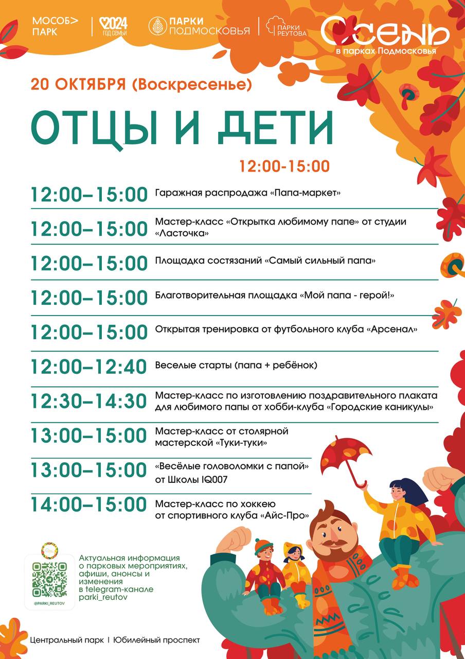 20 октября приглашаем вас в Центральный парк на мероприятие «Отцы и дети», посвященное Дню отца!