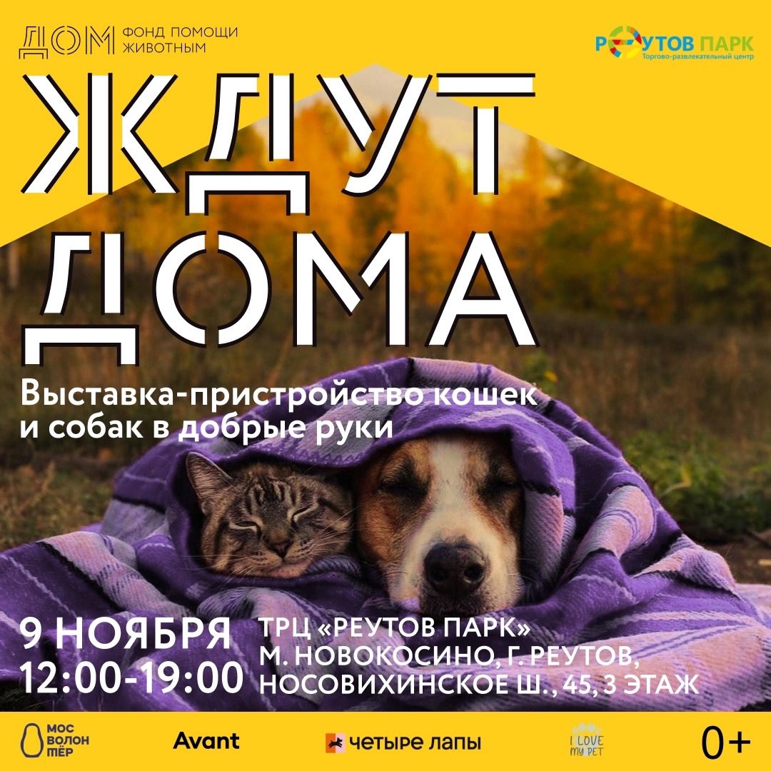 Фонд помощи животным «ДОМ» 9 ноября приглашает всех на очередную выставку-пристройство «Ждут ДОМа». Место встречи - ТРЦ «Реутов Парк»!