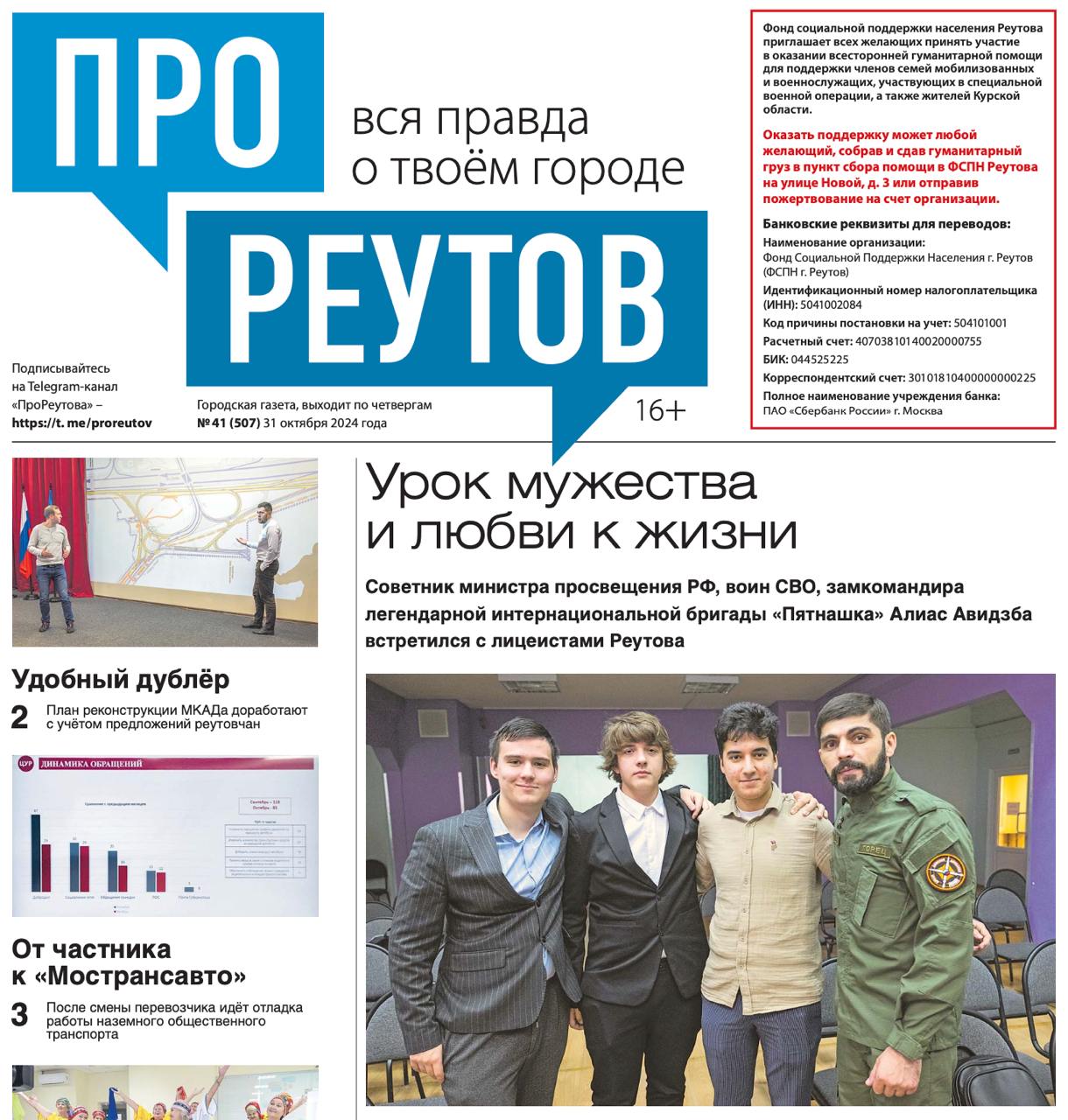 В четверг, 31 октября, вышел 41-й (507) выпуск бесплатной газеты «ПроРеутов».