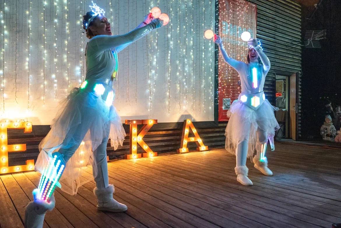 С каждой минутой праздник становился всё веселее. На сцену вышла фитнес-инструктор Оксана Леонтьева, и началась зумба. Оксана показывала танцевальные движения, а дети и взрослые повторяли их. Это развлечение не только подняло всем настроение, но и помогло согреться.