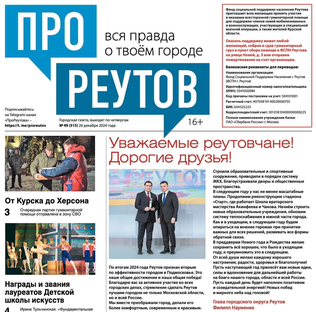 В четверг, 26 декабря, вышел 49-й (515) выпуск бесплатной газеты «ПроРеутов».
