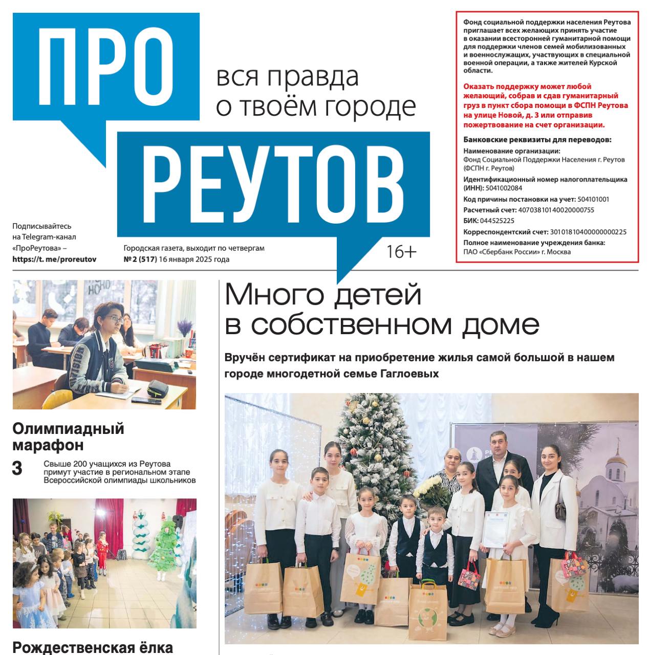 В четверг, 16 января, вышел 02-й (517) выпуск бесплатной газеты «ПроРеутов».