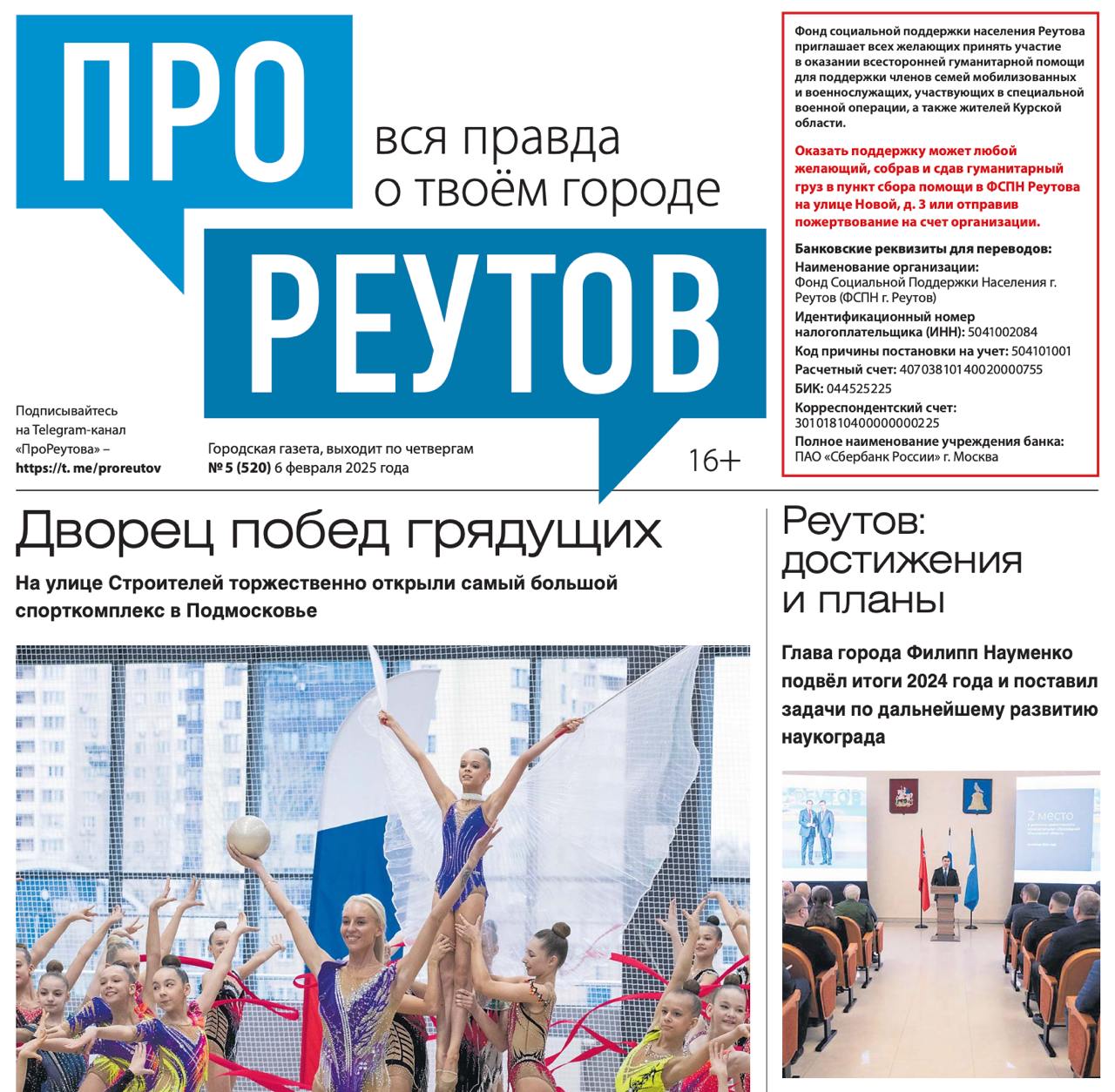 В четверг, 6 февраля, вышел 05-й (520) выпуск бесплатной газеты «ПроРеутов».