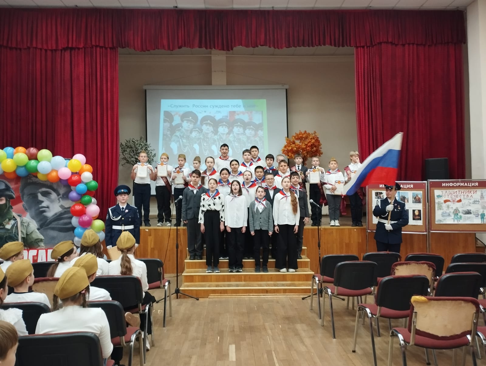 В завершение мероприятия ученики 4 класса «Б» исполнили песню «Учил Суворов», ученики 3 класса «А» - песню «Моя армия самая сильная», ученики 5 класса «А» - песню «Служить России».