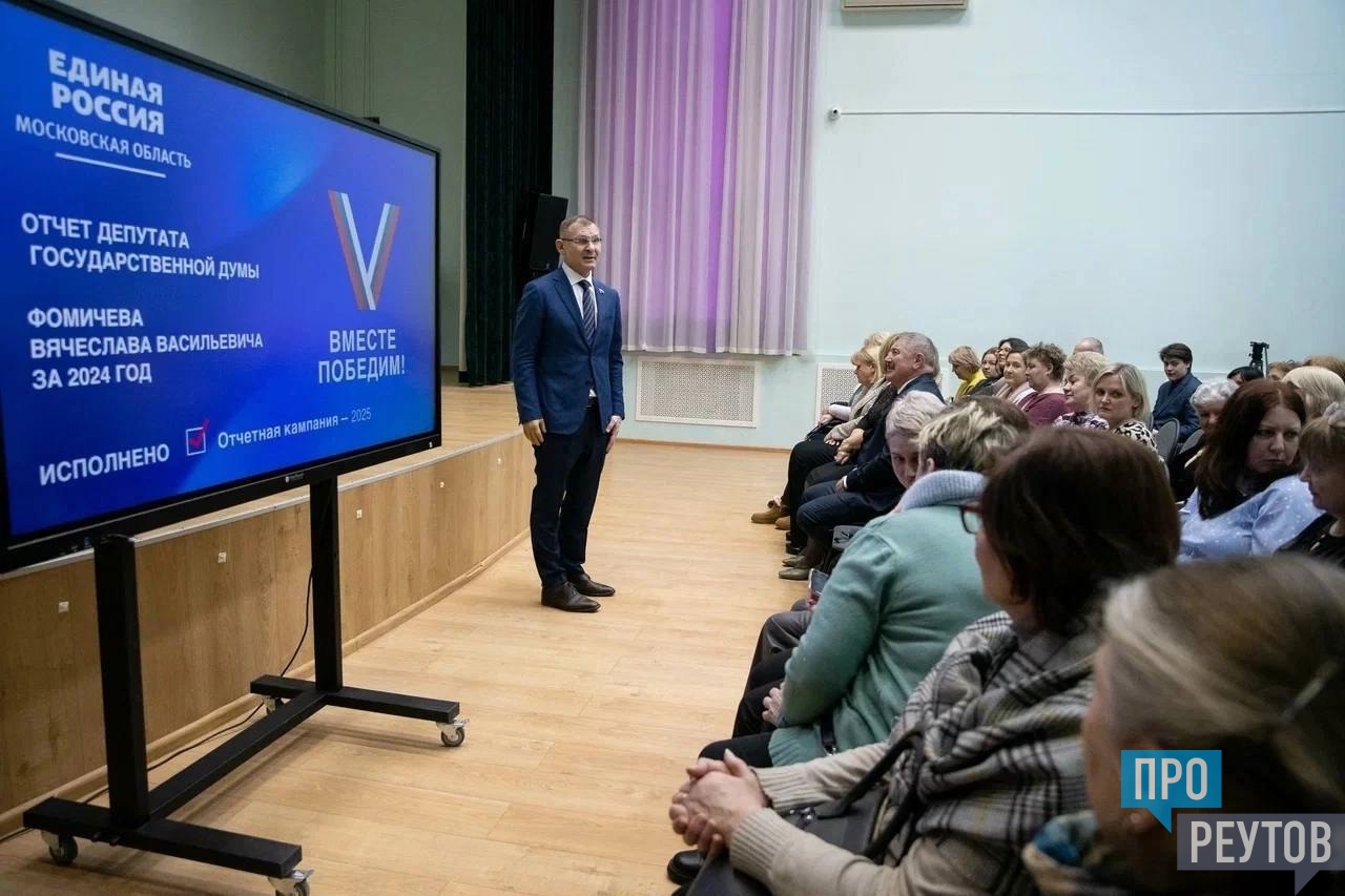 Председатель Совета депутатов Реутова Николай Ковалев и депутат Светлана Беляевская приняли участие в отчете за 2024 год депутата Государственной Думы Вячеслава Фомичева перед педагогическим коллективом МАОУ «Лицей».