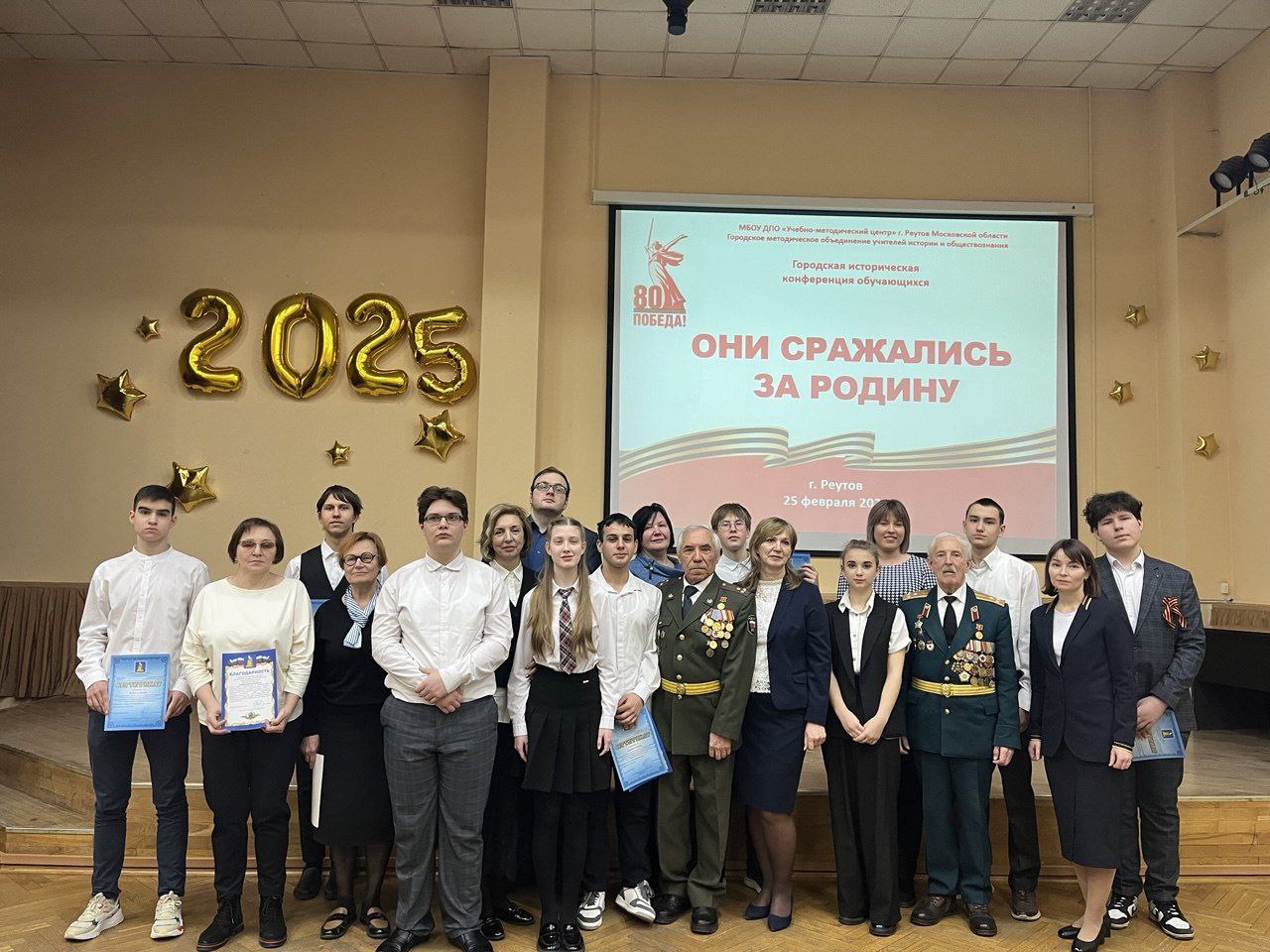 В школе № 7 городского округа Реутов прошла Городская историческая конференция «Они сражались за Родину!», посвящённая 80-летию Победы в Великой Отечественной войне. В мероприятии приняли участие обучающиеся 8–11 классов всех общеобразовательных учреждений города, а также педагоги, ветераны и представители администрации.