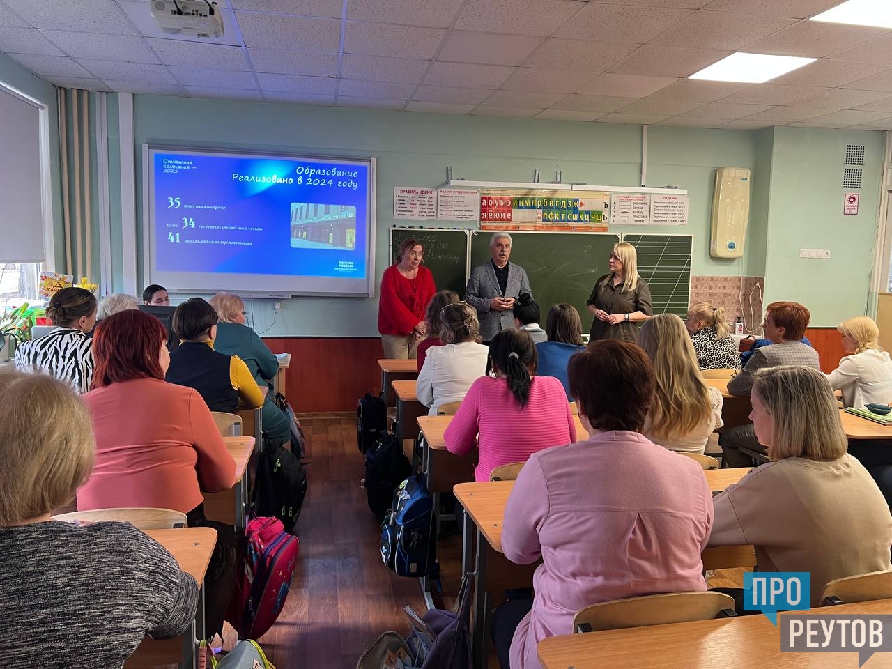 Руководитель фракции «Единая Россия» в Реутове Геннадий Коконин совместно с депутатами Совета Мариной Кудиновой и Еленой Питьевой провел отчетную встречу с трудовым коллективом МБОУ «СОШ №4».