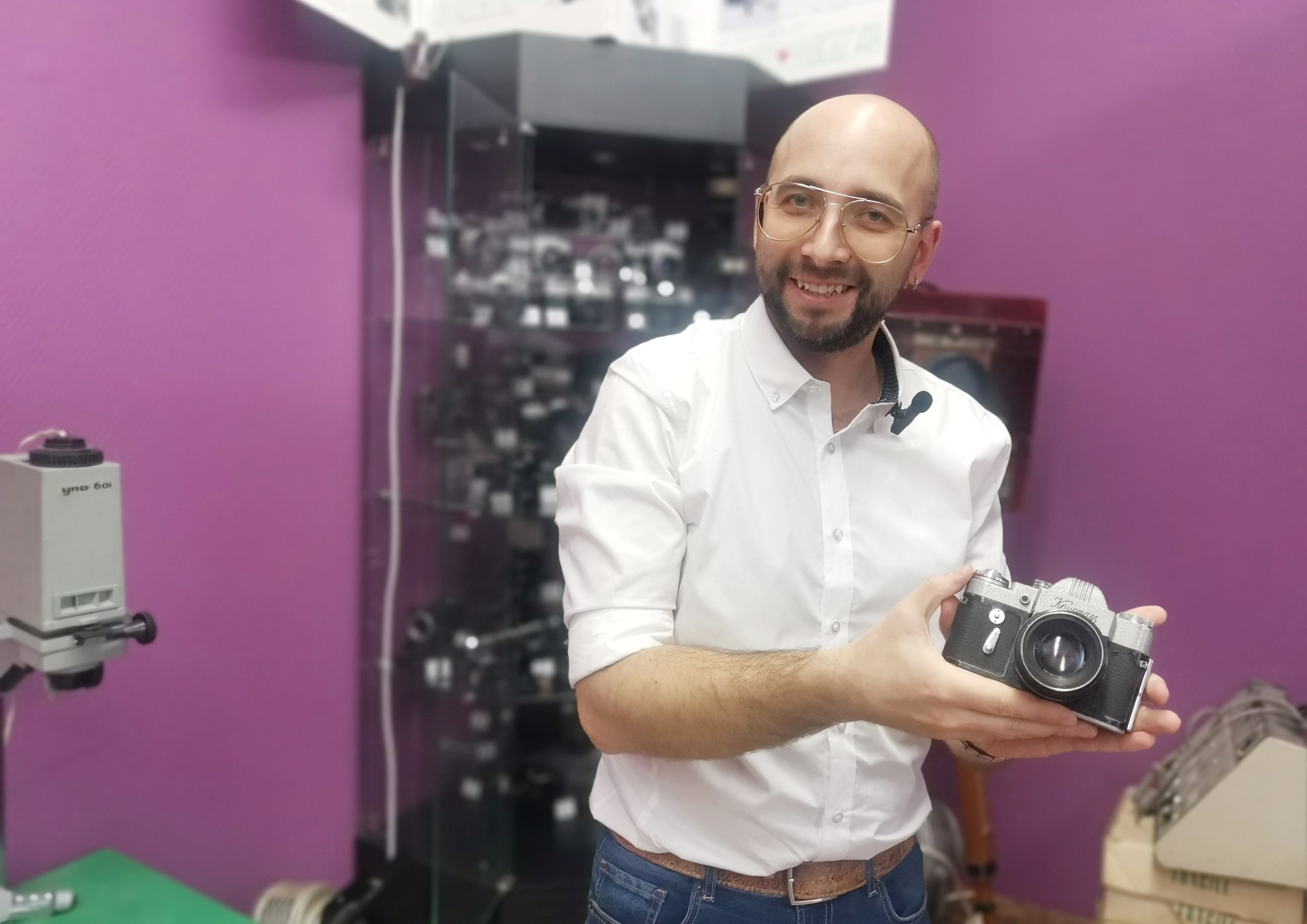 Итак, экспонаты — это множество всякой аппаратуры: фотоаппараты, фотоувеличители, радиолы, магнитофоны и прочая редкая для сегодняшнего дня техника. Юрий Уробушкин собирал все это по крупицам, находя, выкупая, восстанавливая, так, чтобы большинство экспонатов еще исправно работали, хотя многим из них 30, 40, 50, а некоторым даже почти 100 лет с момента выпуска!