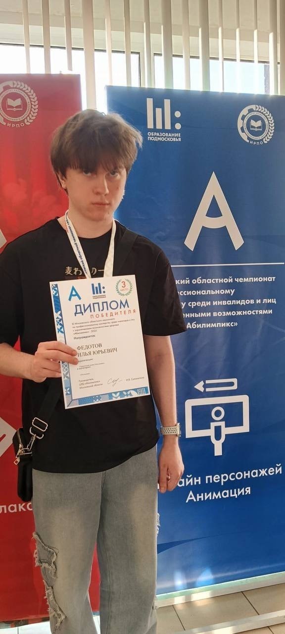 Федотов Илья, ученик 11 класса школы №10 стал победителем XI Московского областного чемпионата по профессиональному мастерству «Абилимпикс». Илья соревновался в компетенции "Графический дизайн", он разработал на компьютере дизайн-концепцию фирменного стиля и выполнил задание по организации личного профессионального развития. Илья занимается под руководством учителя Ворониной Галины Анатольевны.