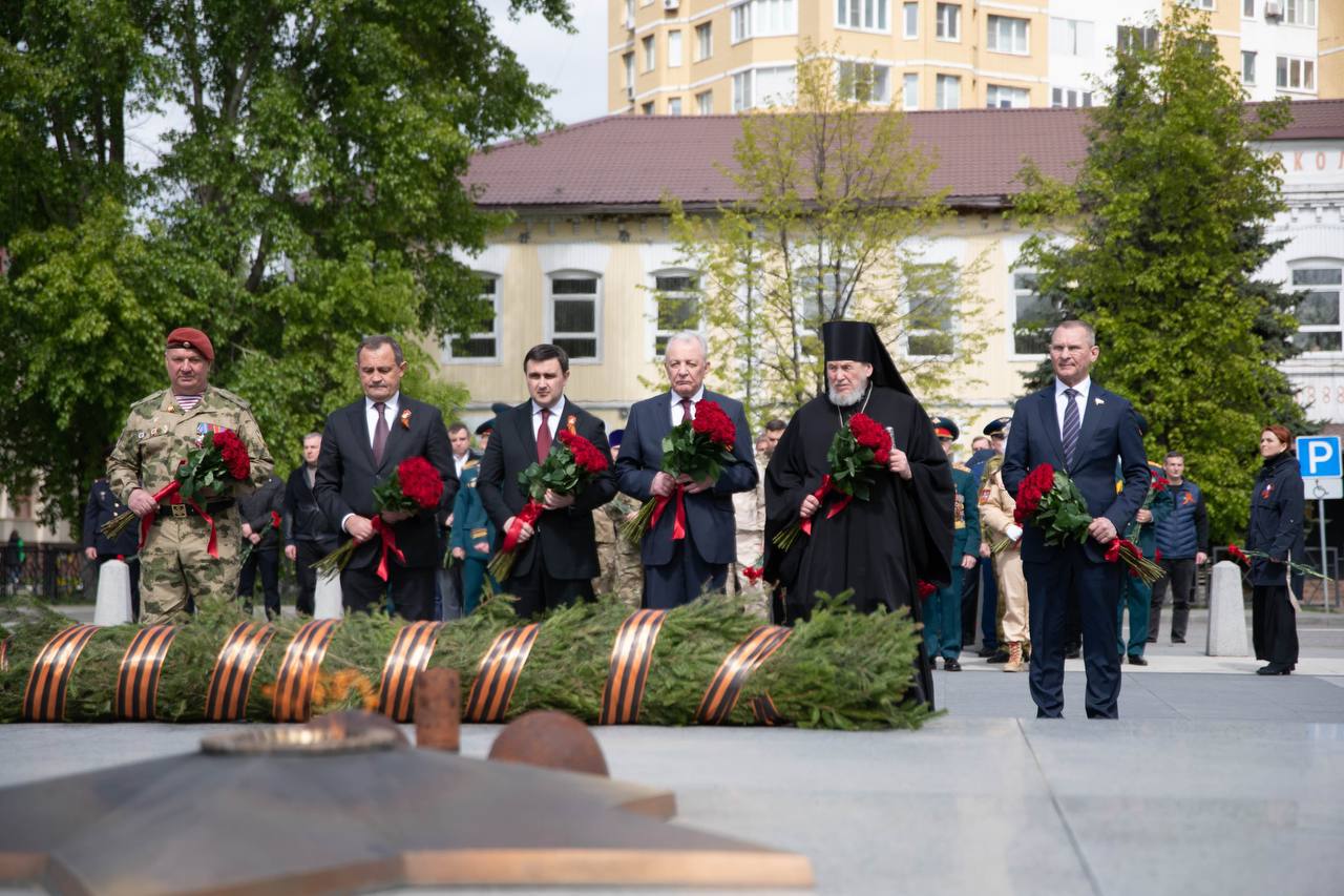 В 13:30 состоялось главное традиционное торжество Дня Победы в Реутове — праздничный митинг. В нем приняли участие председатель Московской областной Думы Игорь Брынцалов, глава городского округа Филипп Науменко, генеральный директор АО «ВПК «НПО машиностроения» Александр Леонов, депутат Государственной Думы Вячеслав Фомичев, епископ Балашихинский и Орехово-Зуевский, владыка Николай, командир ОДОН имени Ф.Э. Дзержинского генерал-майор Дмитрий Кузнецов, председатель реутовского Совета ветеранов Валерий Нечай, участники СВО, депутаты муниципального Совета депутатов и другие почетные гости.