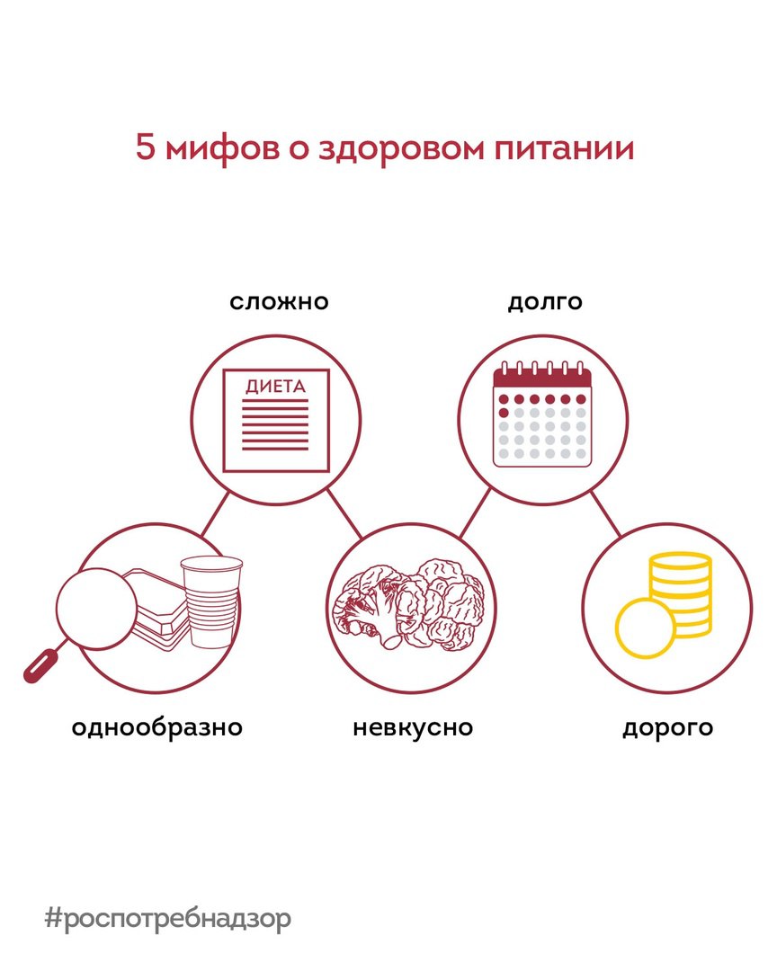 Здоровое питание все представляют себе по-разному. Многим кажется, что оно предполагает отказ от всего вкусного или, например, переход к вегетарианству. Роспотребнадзор развенчивает основные мифы о здоровом питании: