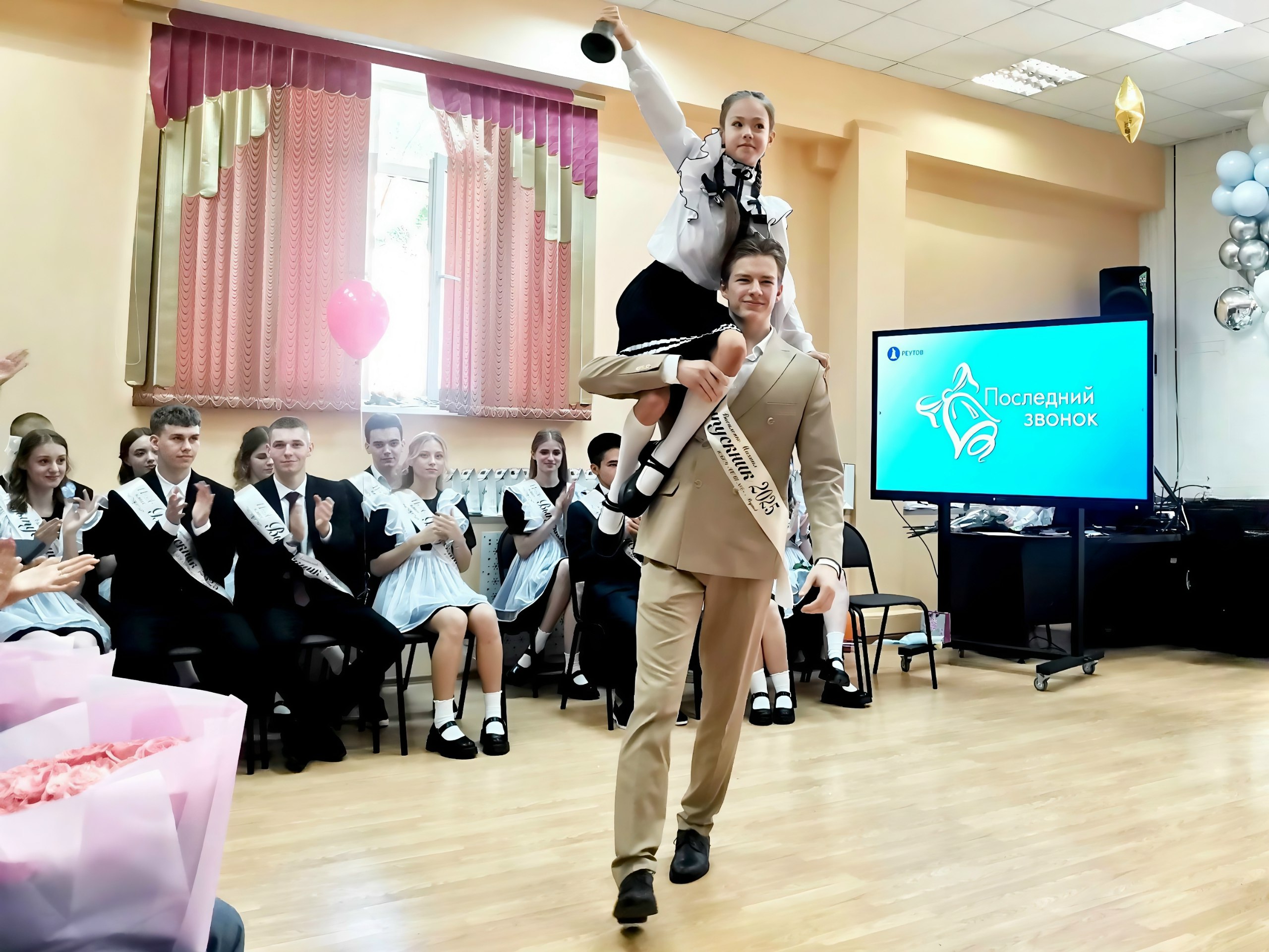 Наш корреспондент побывала на празднике «Последнего звонка» в школе № 6, где 32 учеников 11 «А» провожали во взрослую жизнь учителя, родители и почетные гости: начальник Управления образования администрации Реутова Оксана Рогачева-Маслова, депутаты Совета городского округа Дмитрий Чижов и Михаил Шепелев и другие приглашенные. Прежде чем войти в актовый зал, одиннадцатиклассники вместе с директором школы Юлией Дюбкиной и своим классным руководителем Мариной Довиденко прошли через живой коридор из первоклашек, дружно кричавшим виновникам торжества «Поздравляем!», а в зале ребят аплодисментами встречали их учителя и родители.