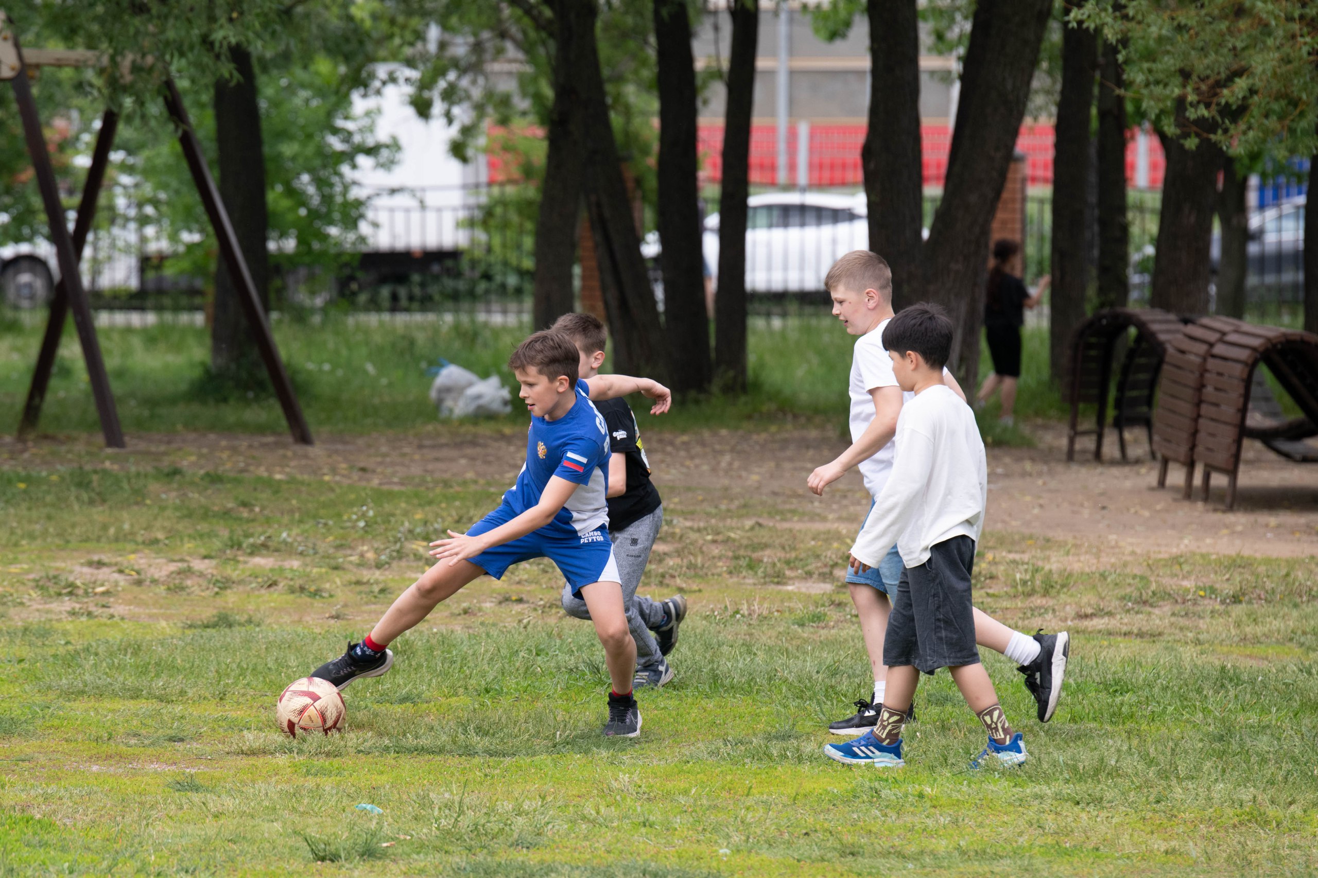 Детей ждали игры, танцы и конкурсы с аниматорами. Веселая музыка, мыльные пузыри и воздушные шары создавали атмосферу настоящего праздника. Ребята с радостью гонялись за шарами, танцевали, а чтобы они надолго запомнили этот день, организаторы устроили им групповую фотосессию — одну серьезную, а вторую веселую: дети могли скорчить любую забавную рожицу.