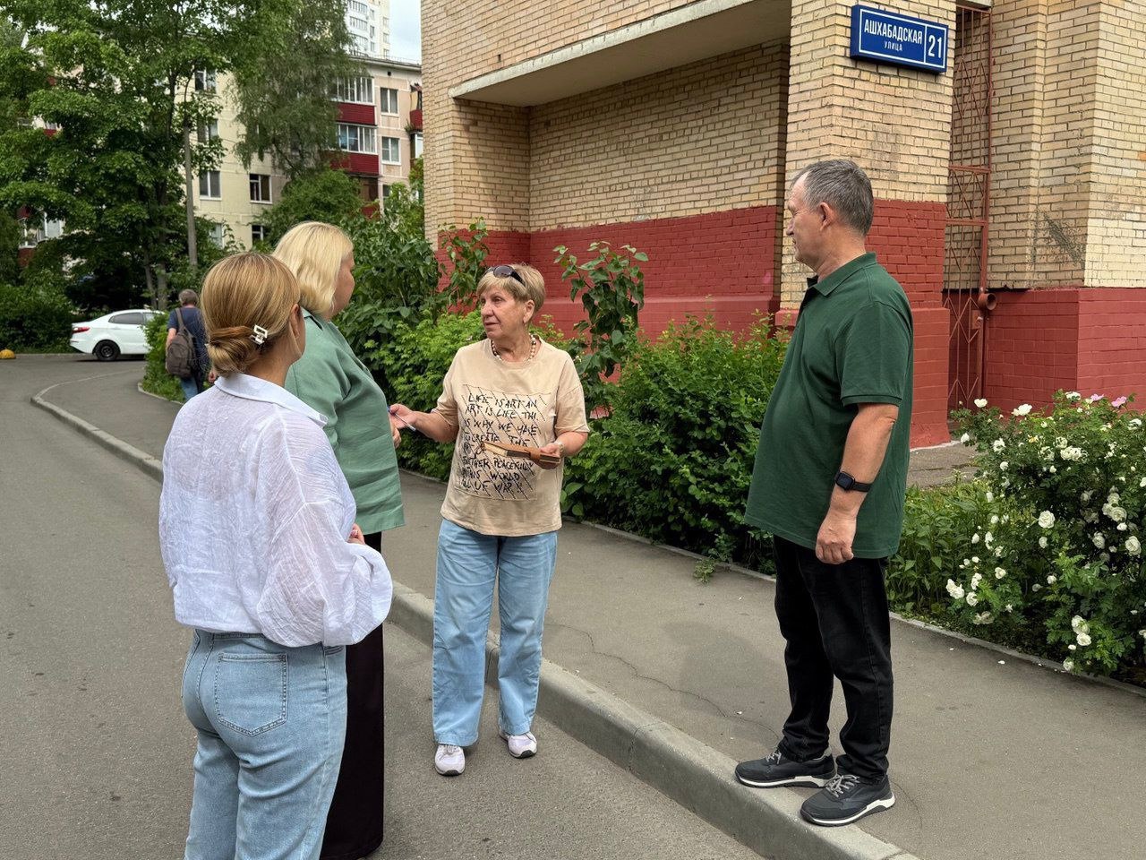 В Реутове руководитель местного отделения Ассоциации председателей советов многоквартирных домов Московской области Юрий Подымахин вместе с заместителем главы города по благоустройству Лилией Богдановой, депутатом Юлией Степановой встретился с жителями д. 21 по улице Ашхабадской. Встреча была организована по инициативе председателя совета дома Валентины Потаповой, а тема - благоустройство территории у дома.