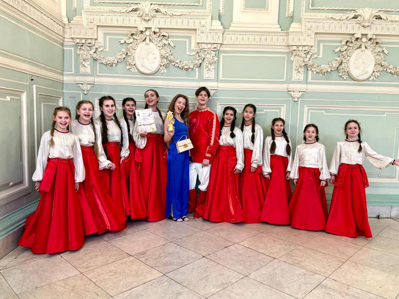 Наши ребята, средняя группа, исполнили Русскую народную песню «Не пляшите девки дюжа» и вошли в тройку лучших Ансамблей России (народный вокал).